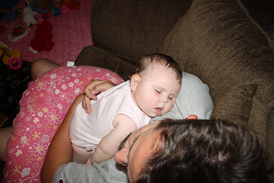 These are a few weeks old but I can't remember If I posted them or not. Also I believe she took her first real try at Crawling today. Her hands moved forward and so did her legs but then she fell so I couldn't tell. And those top 2 teeth broke through the Skin!