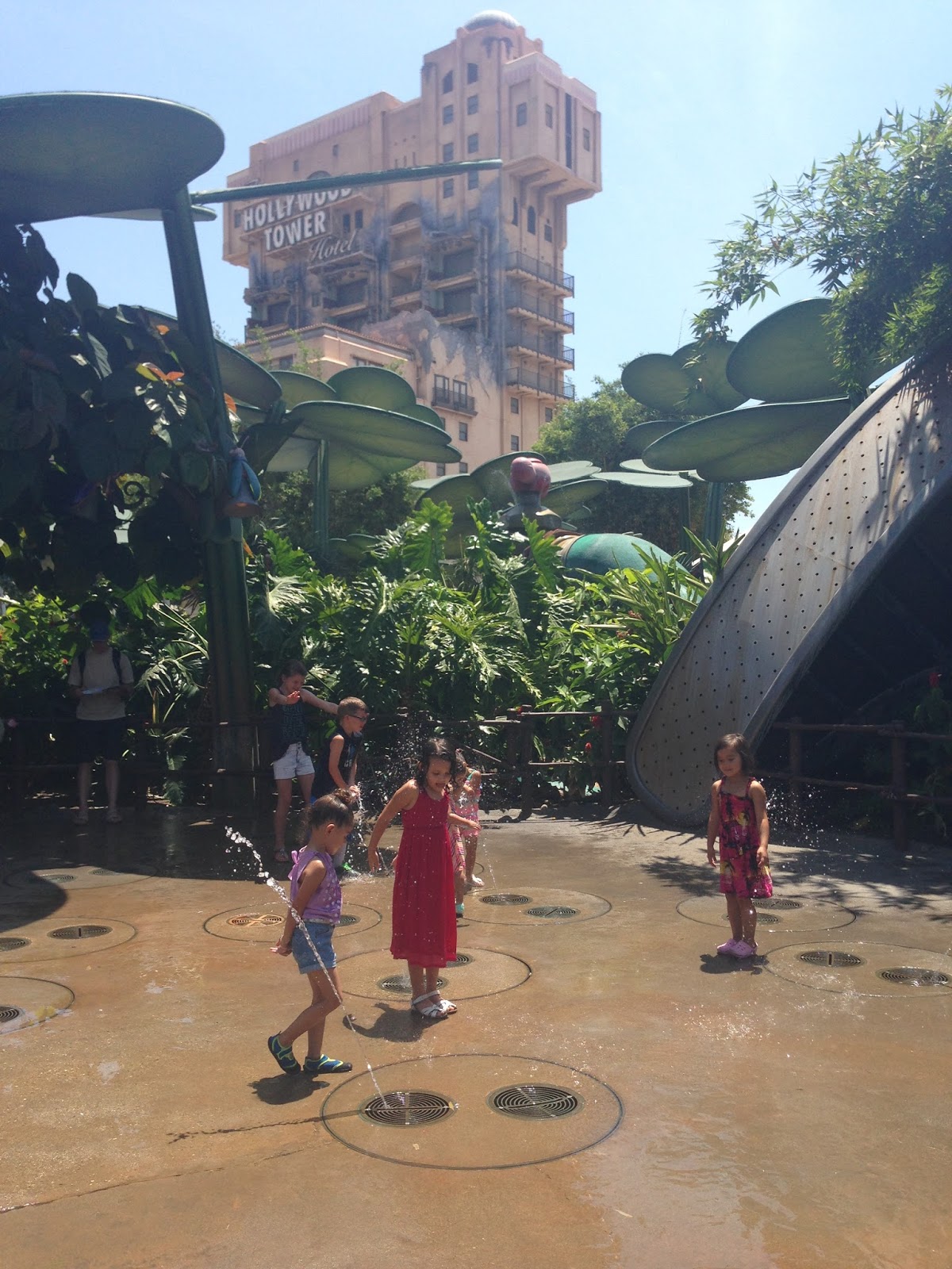 It's been hot lately. Like really hot and Humid. So we've been staying in, like everyday. So I decided we needed a little mid week Disneyland trip. I figured we could play in the water area and wilderness playground for the day. The kids loved it and had a blast. We didn't even ride rides just did "adventures" everywhere. Baylen scored some free sourdough bread to. And not to mention the sudden random thunderstorm and rain. Like I said it's been humid lately. That's OK, we still had fun!
